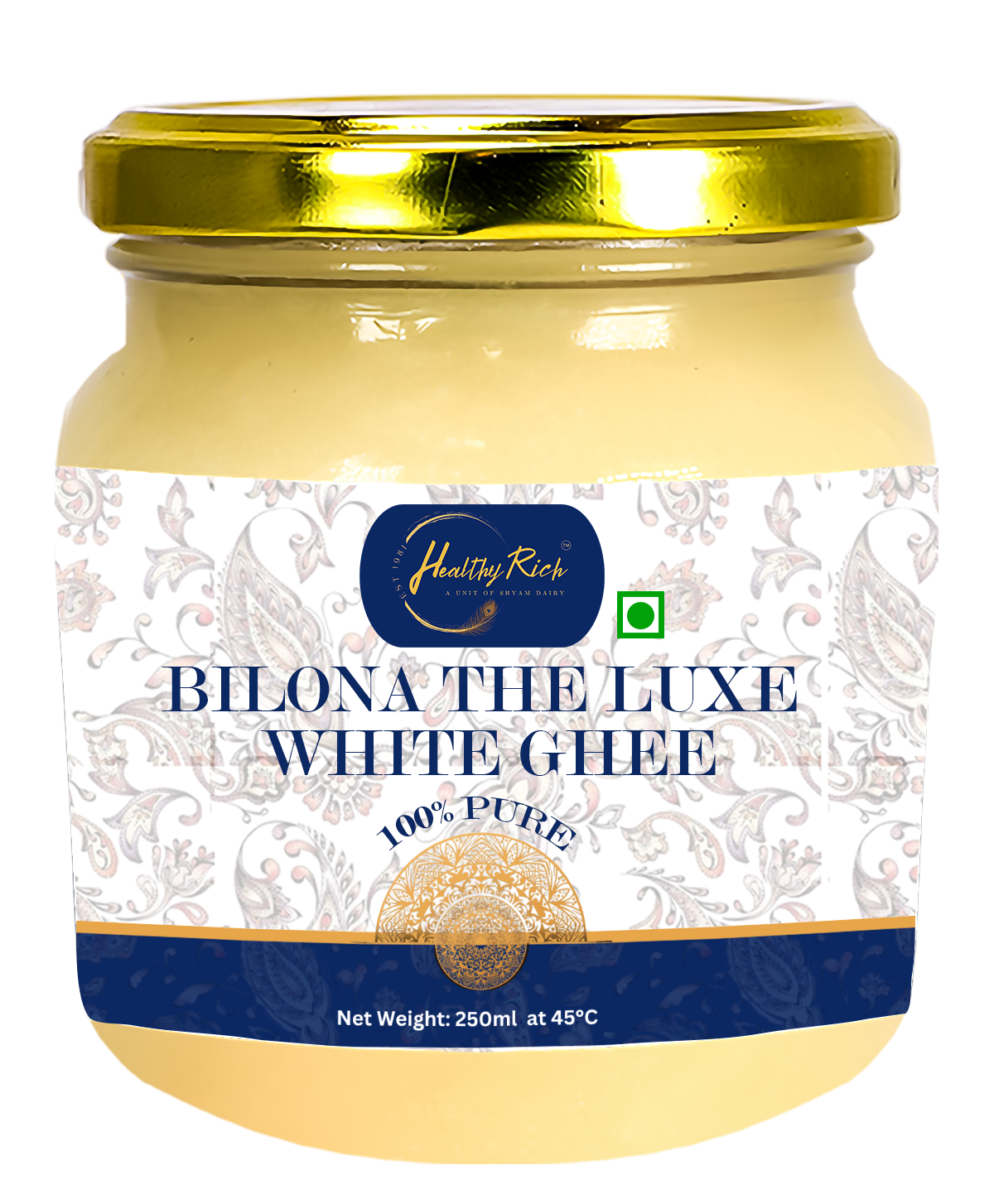 Crafted with care using the traditional Bilona method, Healthy Rich Cow Ghee is made from the A2 milk of grass-fed Desi cows, lovingly raised on natural farms. Our cows are free-grazed, chemical-free, and treated with respect—ensuring a wholesome and sattvic product.
